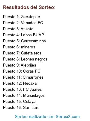 Lista de participantes: Alebrijes, Atlante, Cafetaleros, Celaya, Cimarrones, Coras FC, Correcaminos, FC Juárez, Leones negros, Lobos BUAP, mineros, Murciélagos, Necaxa, San Luis, Venados FC, Zacatepec.