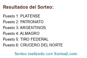 Lista de participantes: ARGENTINOS, TIRO FEDERAL, PLATENSE, PATRONATO, ALMAGRO, CRUCERO DEL NORTE.