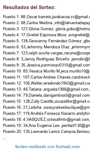 Lista de participantes: @audrey.badilla.solis, @luisana-gs, @jenrobri, @colosalfmtv, @nicolchc22, @merbrand, @dayi_89, @maritzamadriz, @isabelumarin, @michaelco1000, @hazel.castilla, @avivaorganic, @patri14vargas, @margotho, @adolfo.ramicar, @kcanolinett, @emgrettel, @raquelhm89, @avillalobos4, @asatshopdesign, @shaly200598, @marcela.ucr, @castrokarolay84, @collethy, @jek_cr, @estefanynh, @sassycakesboutique, @mirladelcarmen_8, @vane907, @valdiviakat, @chevycm, @obandovasquezfabian, @rosmerysinsi, @perlita0130, @jcarmonac0310, @adrianazofeifa.39, @yusbelizg, @isabel.rodva62, @aliciamonterrey, @gianfrankcordero, @ritalazaroaya57, @doripega, @romymjc, @anynoemytkm1405, @corderomaikolcr, @argueta1386, @imagparra, @elviradelgado, @denis700g, @estherpaiz, @nadiag_05, @mariferbolanos7, @jehimmymendoza, @jani05oporta, @moremary78, @johny.ramirez, @yancycastro, @antonelalavitola, @kesquivel1737, @dathan-lael, @fanny3087, @gonzalezshirlene86, @mariaelenabg2, @sumaya-129, @nancygarvega, @info, @melissamg19, @edithleiva, @gabx23, @johelhenrie, @ron.alpizar, @tonicalderoncastro, @diancastillo77, @maricanoas2009, @taconesrojos.radio, @danigamboa5, @michi_hb, @alegriia12310, @antonio.csmurcia, @heilinmbarquerom, @mauri797, @jeca.murillo10, @anahuermen, @ri1958ya, @jarabacoa.cr, @anmadrigal04, @eliobenavidesblanco, @sarayvc, @pame-cch, @patrycruzcha, @mileiny09, @milagro1410, @allanguevara08, @dgdocolena, @yamilethreyesalvarez, @emanuel, @mj285460, @gaudy780, @dvanepr, @dennerportuguezbejarano, @vedu0204, @wredondo1963, @drumant17, @candreschaves27, @beatrizhoyos, @argkato, @brensonmendez, @ronaco08, @maynorj, @adrian.acuna.salas, @leon1986mary, @alfredo.sanchezc, @javsevi12, @josscris2016, @kathygarcia.m, @andyfonseca, @bernygarcia0201, @jortreso79, @joyce2387, @racuna, @vale10211, @rvargas, @fcastro1708, @gloria.gobu, @zucastillor, @gondil1059, @josi1914, @rocioqo87, @eligarro, @kcenteno531, @amiranda, @llariosc, @hc14benavides, @walbertoarcesalas1981, @gfernandeznico, @tatizu22, @wilsonsolanozamora, @xiomacapa, @cristianvalerio, @joseaurelio2009, @andreyvizu28, @irebenavides1971, @magachina0405, @peraza_307, @andreemarcee, @cristian.261930, @lth.sc9, @lenincostarica, @martinporrasv, @morasf, @celinsax, @wrojasz, @charlie.2014, @familiarodriguezmonge.
