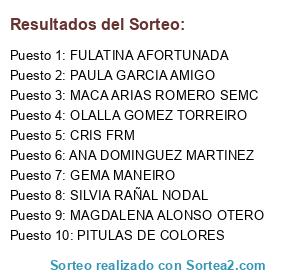 Lista de participantes: GRACIELA VILA COUCEIRO, MAGDALENA ALONSO OTERO, MARIBEL SUAREZ SUAREZ, ELOY TRIÑANES PEREZ, JULIA QUINTERO PRADOS, @isapicos, MARIA TERESA QUINTERO PRADOS, ANDREA MEXIGOS, LALE LOPEZ, MON TSE, LAURA GARCIA VIDAL, CRIS LACASITADECRIS, MARIA DIS, SANDRA ABAL IRAGO, ANA DOMINGUEZ MARTINEZ, MONTSE CASAS SALGADO, ERIKA FRÜHINSFELD LIMA, OLALLA GOMEZ TORREIRO, CRIS FRM, GABBY COLOMBO, PITULAS DE COLORES, GEMA MANEIRO, FULATINA AFORTUNADA, ANA MARIA OLIVEIRA HORTA, MACA ARIAS ROMERO SEMC, SANDRA RODRIGUEZ BARREIRRO, PAULA GARCIA AMIGO, VICTORIA WONENBURGER, CATARINA WONENBURGER, SILVIA RAÑAL NODAL, GRACIA PLAÑEZ, IRENE FONTENLA.