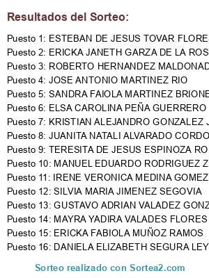 Resultados del sorteo: