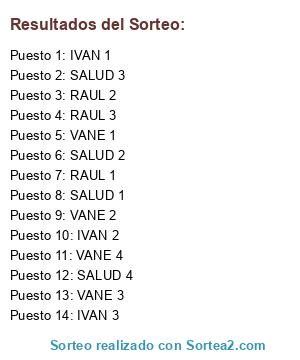 Lista de participantes: VANE 1, SALUD 1, RAUL 1, IVAN 1, VANE 2, SALUD 2, RAUL 2, IVAN 2, VANE 3, SALUD 3, RAUL 3, IVAN 3, VANE 4, SALUD 4.