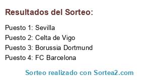 Lista de participantes: Borussia Dortmund, FC Barcelona, Sevilla, Celta de Vigo.