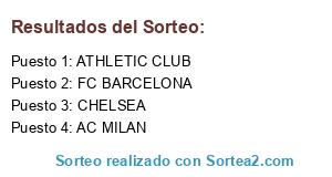 Lista de participantes: FC BARCELONA, CHELSEA, BAYERN MUNICH, ATHLETIC CLUB, TOTTENHAM, AC MILAN.
