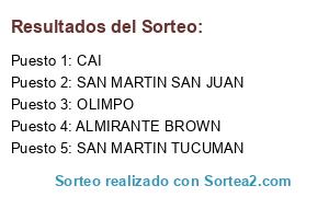 Lista de participantes: CAI, OLIMPO, SAN MARTIN SAN JUAN, ALMIRANTE BROWN, SAN MARTIN TUCUMAN.