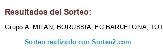 Lista de participantes: FC BARCELONA, TOTTENHAM, BORUSSIA, MILAN.