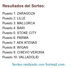 Lista de participantes: LILLE, ZARAGOZA, BARI, MALLORCA, WIGAN, VALLADOLID, CHIEVO VERONA, AEK ATENAS, STOKE CITY, PARMA.