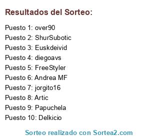 Lista de participantes: jorgito16, over90, diegoavs, Artic, Papuchela, Andrea MF, Delkicio, FreeStyler, ShurSubotic, Euskdeivid.