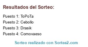 Lista de participantes: Cebollo, Comovaeso, Drasik, ToPoTa.