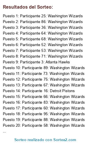 Lista de participantes: Participante 1: Atlanta Hawks, Participante 2: Atlanta Hawks, Participante 3: Atlanta Hawks, Participante 4: Atlanta Hawks, Participante 5: Atlanta Hawks, Participante 6: Brooklyn Nets, Participante 7: Brooklyn Nets, Participante 8: Brooklyn Nets, Participante 9: Brooklyn Nets, Participante 10: Dallas Mavericks, Participante 11: Dallas Mavericks, Participante 12: Dallas Mavericks, Participante 13: Dallas Mavericks, Participante 14: Detroit Pistons, Participante 15: Detroit Pistons, Participante 16: Detroit Pistons, Participante 17: Detroit Pistons, Participante 18: Detroit Pistons, Participante 19: Oklahoma City Thunder, Participante 20: Oklahoma City Thunder, Participante 21: Oklahoma City Thunder, Participante 22: Oklahoma City Thunder, Participante 23: Oklahoma City Thunder, Participante 24: Washington Wizards, Participante 25: Washington Wizards, Participante 26: Washington Wizards, Participante 27: Washington Wizards, Participante 28: Washington Wizards, Participante 29: Washington Wizards, Participante 30: Washington Wizards, Participante 31: Washington Wizards, Participante 32: Washington Wizards, Participante 33: Washington Wizards, Participante 34: Washington Wizards, Participante 35: Washington Wizards, Participante 36: Washington Wizards, Participante 37: Washington Wizards, Participante 38: Washington Wizards, Participante 39: Washington Wizards, Participante 40: Washington Wizards, Participante 41: Washington Wizards, Participante 42: Washington Wizards, Participante 43: Washington Wizards, Participante 44: Washington Wizards, Participante 45: Washington Wizards, Participante 46: Washington Wizards, Participante 47: Washington Wizards, Participante 48: Washington Wizards, Participante 49: Washington Wizards, Participante 50: Washington Wizards, Participante 51: Washington Wizards, Participante 52: Washington Wizards, Participante 53: Washington Wizards, Participante 54: Washington Wizards, Participante 55: Washington Wizards, Participante 56: Washington Wizards, Participante 57: Washington Wizards, Participante 58: Washington Wizards, Participante 59: Washington Wizards, Participante 60: Washington Wizards, Participante 61: Washington Wizards, Participante 62: Washington Wizards, Participante 63: Washington Wizards, Participante 64: Washington Wizards, Participante 65: Washington Wizards, Participante 66: Washington Wizards, Participante 67: Washington Wizards, Participante 68: Washington Wizards, Participante 69: Washington Wizards, Participante 70: Washington Wizards, Participante 71: Washington Wizards, Participante 72: Washington Wizards, Participante 73: Washington Wizards, Participante 74: Washington Wizards, Participante 75: Washington Wizards, Participante 76: Washington Wizards, Participante 77: Washington Wizards, Participante 78: Washington Wizards, Participante 79: Washington Wizards, Participante 80: Washington Wizards, Participante 81: Washington Wizards, Participante 82: Washington Wizards, Participante 83: Washington Wizards, Participante 84: Washington Wizards, Participante 85: Washington Wizards, Participante 86: Washington Wizards, Participante 87: Washington Wizards, Participante 88: Washington Wizards, Participante 89: Washington Wizards, Participante 90: Washington Wizards, Participante 91: Washington Wizards, Participante 92: Washington Wizards, Participante 93: Washington Wizards, Participante 94: Washington Wizards, Participante 95: Washington Wizards, Participante 96: Washington Wizards, Participante 97: Washington Wizards, Participante 98: Washington Wizards, Participante 99: Washington Wizards, Participante 100: Washington Wizards.