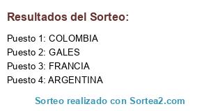 Lista de participantes: COLOMBIA, GALES, FRANCIA, ARGENTINA.