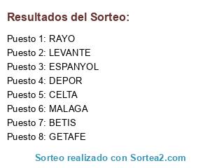 Lista de participantes: LEVANTE, RAYO, GETAFE, DEPOR, BETIS, ESPANYOL, CELTA, MALAGA.