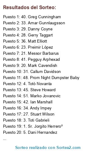 Lista de participantes: 1. Sr. Jorgito Herrero², 2. Matthew Roy, 3. Toti Gabrieli, 4. Totò Novanta, 5. Dani Hernandez, 6. Sr Maxi Carreras, 7. Juan Belloso, 8. Sergio Markitos, 9. Gadeon McCloud, 10. Tony Recuerdo, 11. Arquin Fida, 12. Tigran Petrosian, 13. Hacha Brava, 14. Romario, 15. Pellayo Belluver, 16. Rafa Mujica, 17. santi cañizares II, 18. Mestoyponiendo Redondo, 19. Carlos Freyre, 20. Mark Cavendish, 21. Messor Barbarus, 22. Eric Cantona, 23. Preimir López, 24. Sergio Vicente, 25. Joey Barton, 26. Dallas Gascoigne, 27. Stuart Wilson, 28. Gerry Taggart, 29. Danny Coyne, 30. Ian Walker, 31. Callum Davidson, 32. Stefan Oakes, 33. Arnar Gunnlaugsson, 34. Andy Impey, 35. Urac Hunt, 36. Matt Elliott, 37. Sawyer Frost, 38. Miudo The Mini, 39. Robbie Savage, 40. Greg Cunningham, 41. Pegguy Arphexad, 42. Ian Marshall, 43. Neil Lennon, 44. Steve Walsh, 45. Steve Howard, 46. Stuart Campbell, 47. Tomi Petrescu, 48. Prom Night Dumpster Baby, 49. Augusto NSofa, 50. Mayor McCheese Legionari0, 51. Marko Jovanovic, 52. Michele di Camini.