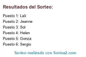 Lista de participantes: Sol, Sergio, Jeanne, Lali, Helen, Gonza.