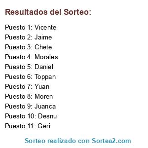 Lista de participantes: Juanca, Morales, Desnu, Daniel, Geri, Jaime, Yuan, Moren, Chete, Toppan, Vicente.