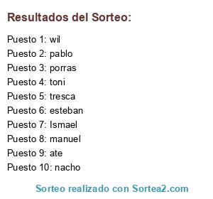 Resultados del sorteo: