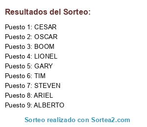 Resultados del sorteo: