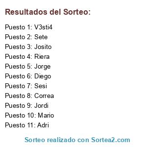 Lista de participantes: Adri, Mario, Riera, Sete, Jorge, Sesi, Correa, Josito, V3sti4, Diego, Jordi.