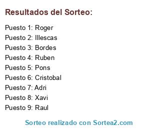 Lista de participantes: Roger, Cristobal, Adri, Pons, Raul, Ruben, Bordes, Xavi, Illescas.
