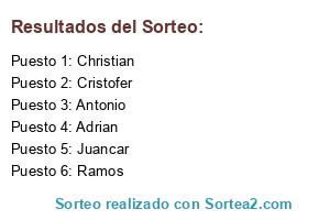 Lista de participantes: Cristofer, Adrian, Antonio, Christian, Ramos, Juancar.