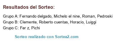 Lista de participantes: Roman, Pichi, Pedroski, Fer z, Fernando delgado, Clemente, Roberto cuentas, Michelo el nine, Horacio, Luiggi.