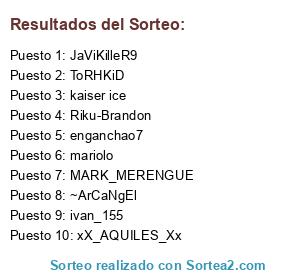 Lista de participantes: ~ArCaNgEl, ToRHKiD, mariolo, ivan_155, JaViKilleR9, Riku-Brandon, MARK_MERENGUE, enganchao7, xX_AQUILES_Xx, kaiser ice.