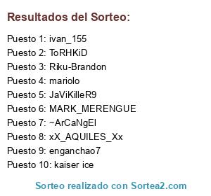 Lista de participantes: JaViKilleR9, ToRHKiD, kaiser ice, Riku-Brandon, enganchao7, mariolo, MARK_MERENGUE, ~ArCaNgEl, ivan_155, xX_AQUILES_Xx.