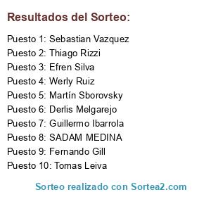 Lista de participantes: Tomas Leiva, Fernando Gill, Sebastian Vazquez, Guillermo Ibarrola, Thiago Rizzi, Derlis Melgarejo, Werly Ruiz, Efren Silva, SADAM MEDINA, Martín Sborovsky.