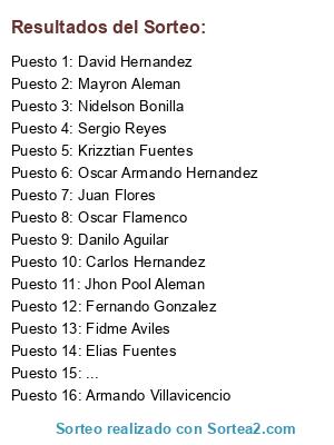 Lista de participantes: Oscar Armando Hernandez, Danilo Aguilar, Fidme Aviles, Juan Flores, Mayron Aleman, Oscar Flamenco, Jhon Pool Aleman, David Hernandez, Sergio Reyes, Armando Villavicencio, Fernando Gonzalez, Nidelson Bonilla, Elias Fuentes, Krizztian Fuentes, Carlos Hernandez, ....