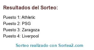 Lista de participantes: Liverpool, Athletic, PSG, Zaragoza.