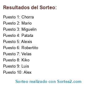 Lista de participantes: Velas, Kiko, Chorra, Mario, Robertito, Miguelin, Luis, Alexis, Alex, Patata.