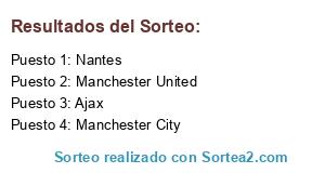 Lista de participantes: Nantes, Manchester City, Ajax, Manchester United.