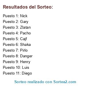 Lista de participantes: Henry, Zlatan, Diego, Gary, Pirlo, Luis, Nick, Pacho, Shaka, Danger, Cajf.