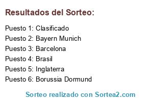 Lista de participantes: Brasil, Inglaterra, Barcelona, Bayern Munich, Borussia Dormund, Clasificado.