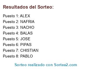 Lista de participantes: NACHO, NAFRIA, BALAS, PIPAS, PABLO, JOSE, ALEX, CHISTIAN.