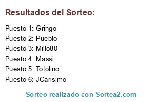 Lista de participantes: Gringo, JCarisimo, Millo80, Pueblo, Totolino, Massi.