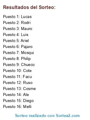 Resultados del sorteo: