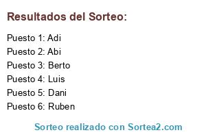 Lista de participantes: Luis, Adi, Abi, Dani, Berto, Ruben.