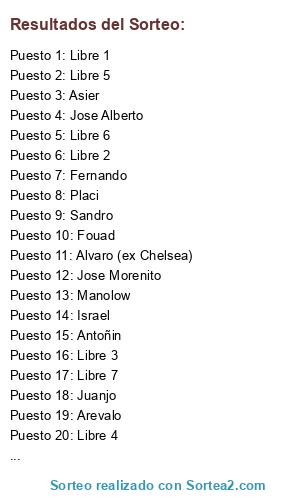 Resultados del sorteo: