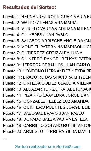 Resultados del sorteo: