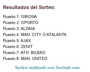 Lista de participantes: ATH. BILBAO, MAN. UNITED, ALDAIA, GIRONA, ZENIT, OPORTO, MAN. CITY O ATALANTA, AJAX.