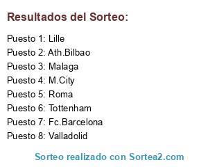 Lista de participantes: Roma, M.City, Ath.Bilbao, Fc.Barcelona, Malaga, Tottenham, Valladolid, Lille.