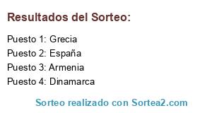 Lista de participantes: España, Dinamarca, Grecia, Armenia.