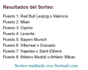 Lista de participantes: Oporto, Levante, Napoles o Saint-Ettiene, Milan, Villarreal o Granada, Bayern Munich, Red Bull Leipzig o Valencia, Atletico Madrid o Athletic Bilbao.