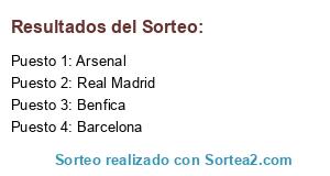 Lista de participantes: Arsenal, Barcelona, Benfica, Real Madrid.