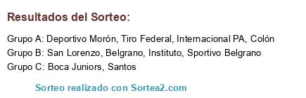 Lista de participantes: Santos, Deportivo Morón, San Lorenzo, Colón, Tiro Federal, Internacional PA, Instituto, Belgrano, Sportivo Belgrano, Boca Juniors.