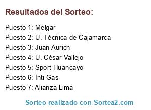 Lista de participantes: Alianza Lima, Inti Gas, U. César Vallejo, U. Técnica de Cajamarca, Juan Aurich, Melgar, Sport Huancayo, .