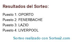 Lista de participantes: OPORTO, LIVERPOOL, LAZIO, FENERBACHE.