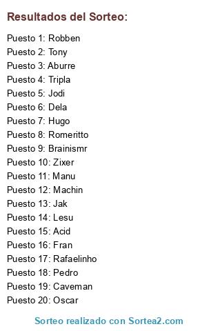 Lista de participantes: Dela, Manu, Pedro, Jodi, Rafaelinho, Fran, Brainismr, Acid, Jak, Caveman, Hugo, Machin, Lesu, Tripla, Romeritto, Tony, Zixer, Robben, Aburre, Oscar.