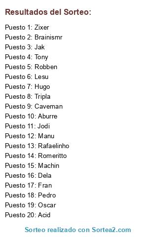 Lista de participantes: Dela, Manu, Pedro, Jodi, Rafaelinho, Fran, Brainismr, Acid, Jak, Caveman, Hugo, Machin, Lesu, Tripla, Romeritto, Tony, Zixer, Robben, Aburre, Oscar.